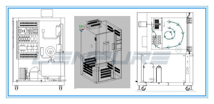 高低溫箱通過控制冷卻系統(tǒng)和加熱系統(tǒng),實現(xiàn)在預(yù)設(shè)的溫度范圍內(nèi)進(jìn)行溫度循環(huán)。溫度控制系統(tǒng)負(fù)責(zé)根據(jù)預(yù)設(shè)的環(huán)境數(shù)據(jù),精準(zhǔn)地控制加熱和制冷系統(tǒng)的運行。加熱系統(tǒng)通常采用電熱絲或電熱管,通過空氣循環(huán)系統(tǒng)將熱量送入試驗箱內(nèi),而制冷系統(tǒng)則利用壓縮機(jī)制冷技術(shù)進(jìn)行降溫。